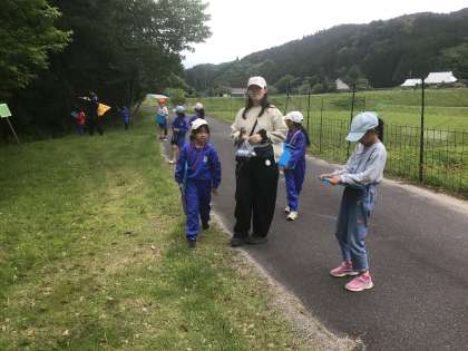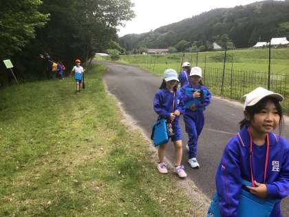 2年生は校外学習で学区を散策しました。熊野神社や山遊里に出かけ、学区の良さを味わいました。