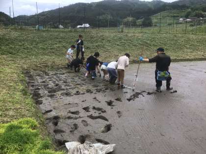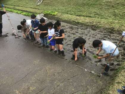 5年生が田植え体験をしました。足をとられそうになりながらも一生懸命に田植えに取り組みました。地域の方のご厚意のおかげで様々な体験ができています。ありがとうございます。