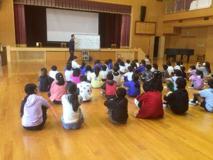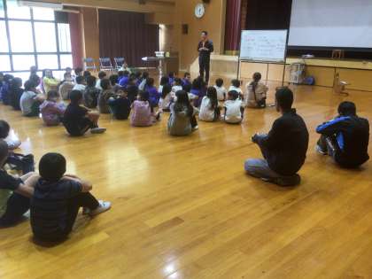 今週の土曜にある環境美化活動の説明を全校で行いました。