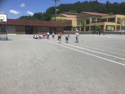 体力テストを行いました。運動場ではボール投げと50m走に取り組んでいます。