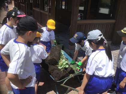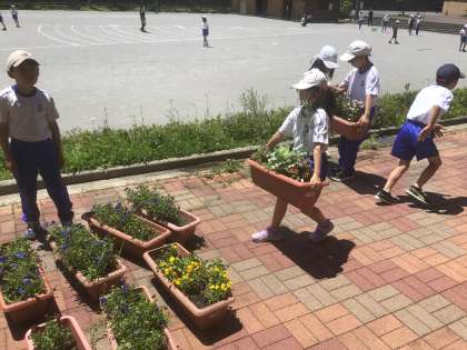 プランターの土を捨てて、来週のチームプランターづくりに備えています。どんなチームプランターができるのか楽しみです。