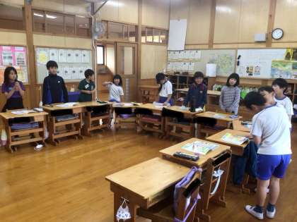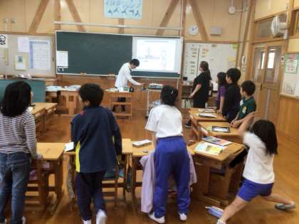 ALTの先生の授業です。歌ったりしながら楽しく学習しています。