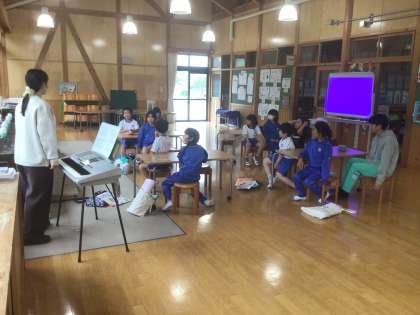 歌声が聞こえます。低学年の子は大きな声で歌うので、学校のどこにいても音楽の授業が始まったことがわかります。