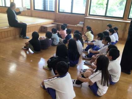 今年度初めてのボランティアの方による読み聞かせです。楽しいお話に、笑い声も聞こえてきます。