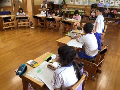 豊田市駅の周りには何があるか、知っていることや、予想したことについて発表しています。