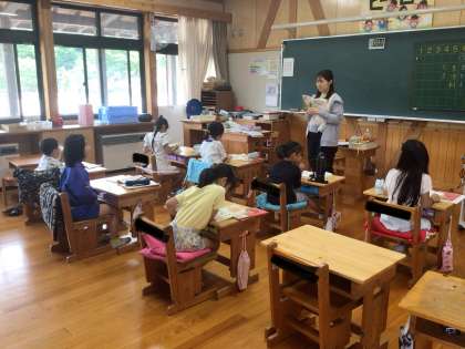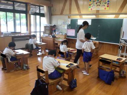 1、2年生とも、よく先生のお話が聞けています。