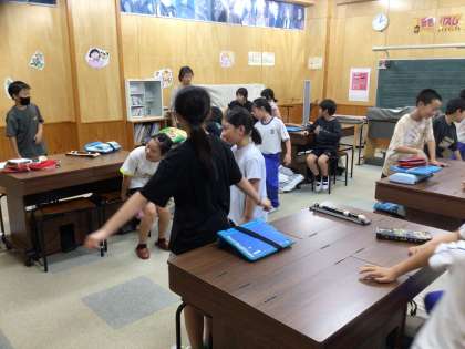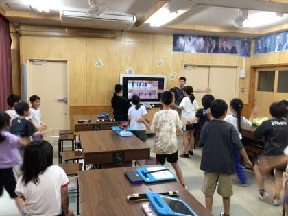 授業のはじめにおいでんを踊って気分を盛り上げています。
