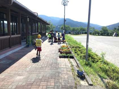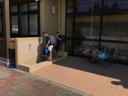 今日は暑くなりそうです。チームプランターに水をあげています。
