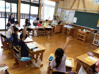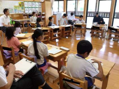 3年生で研究授業を行いました。たくさんの先生が参観される中、しっかりと発言しました。