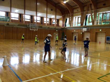 今日は暑さ指数が高いため、3、4時間目に予定していた水泳は中止としました。クーラーがよくきいた体育館で体育の授業を行っています。