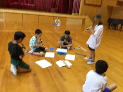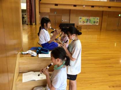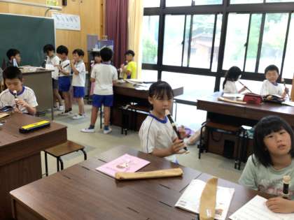 リコーダーの練習です。4年生は多目的室で3年生は音楽室で練習しています。