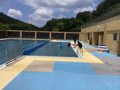 宝探しをしています。プールの底に沈められたものを拾って集めています。