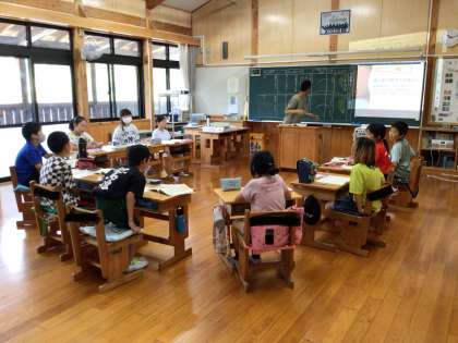 二つの広告を読みくらべながら、それぞれの表し方の工夫について話し合っています。