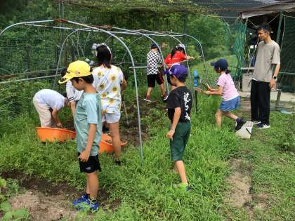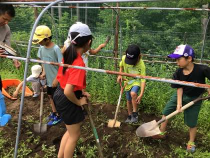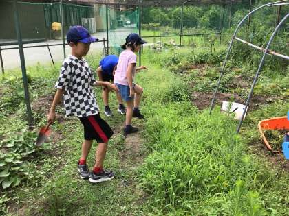 4年生が教室で育てているツルレイシを植えるために、畑を耕しています。来週が楽しみですね。