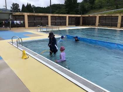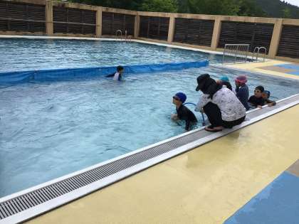 1、2年生は今日が最後のプールでした。水にも慣れてき、水中の輪っかくぐりに挑戦していました。