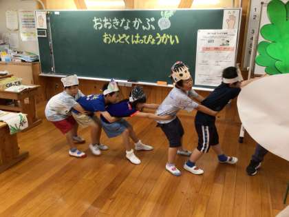 1年生が「おおきなかぶ」の音読発表会に招待してくれました。大きな声で、楽しい演技を見せてくれました。