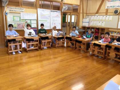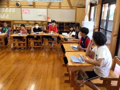 5年生はさっそく国語の授業です。詩について考えていました。6年生は修学旅行の説明をしおりを見ながら聞いています。楽しそうに会話がはずんでいます。