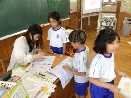 一人一人先生に見てもらっています。みんなとても上手にかけています。