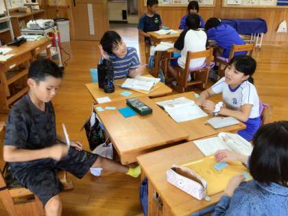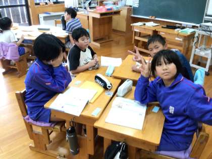 5年生は、国語「問題を解決するために話し合おう」に取り組んでいます。テーマは「下山の観光地のよさを広めるためには?」です。