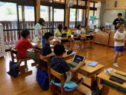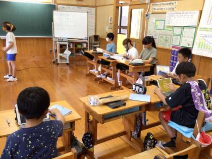 6年生は修学旅行の準備をしています。発表する文を暗記しているようです。