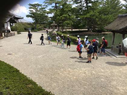 法隆寺を見学しています。子どもたちは、刀のことや、五重塔のことなど、いろんなことを教えてくれました。よく勉強しています。熱心に見学しています。好奇心旺盛な6年生です。