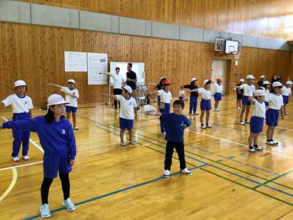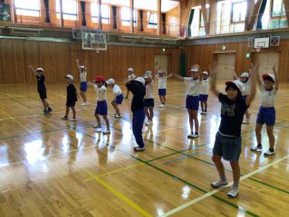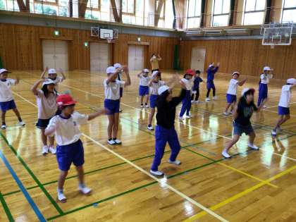 体育館では1、2、3年生が運動会で披露するダンスの練習をしていました。とても楽しそうです。