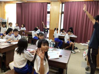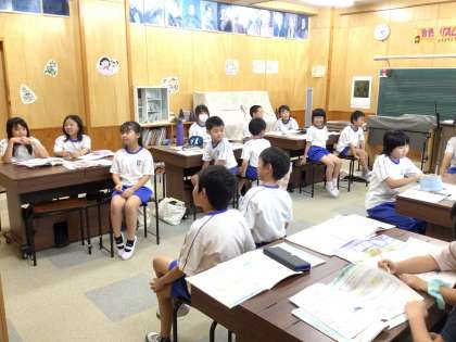 鑑賞の授業をしています。音楽を聴いて感じたことを発表しています。