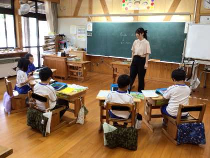 1年生がお祭りの計画を立ています。こども園の子達を招待して楽しんでもらう予定です。どんなゲームを作ろうかなど、意欲的に取り組んでいます。