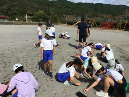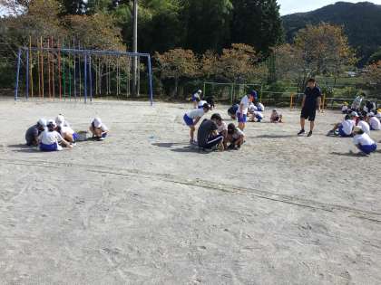 今日のお昼の清掃活動の時間に、運動場の草取りをしました。運動会に備えて熱心に取り組んでいます。