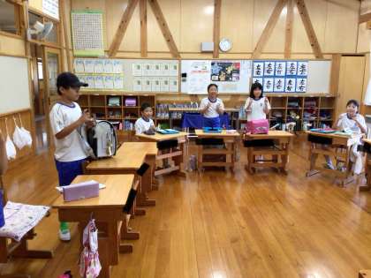 3、4年生の子は昨日習った手話を使って「おはようございます」の挨拶をしてくれました。