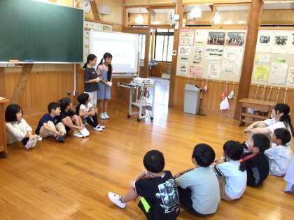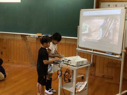 今まで2年生がしていたクルミのお世話を1年生に引き継ぎました。2年生の子達は、自分達で作った動画や図を見せながら、上手にお世話の仕方を説明していました。