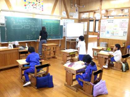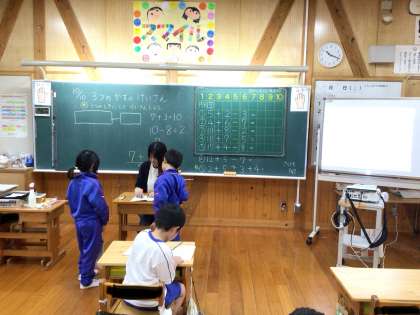 3つの数の計算に取り組んでいます。できた子から先生に見てもらっています。