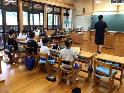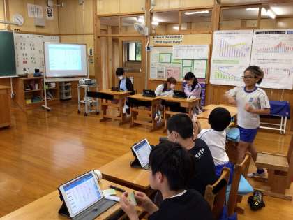 標語づくりに取り組んでいます。完成した標語をタブレットを使って共有し、感想を発表しあいます。