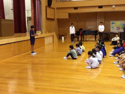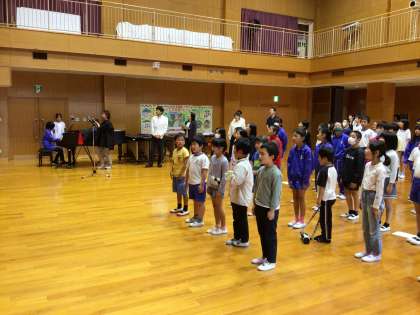 おはなし集会の後は校歌を歌いました。今日から伴奏は新しく5年生の子に引き継がれました。今まで伴奏をしてくれた子から挨拶をしてもらった後、新しい伴奏者の伴奏で校歌を歌いました。歌も伴奏も立派でした。