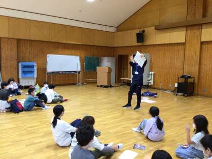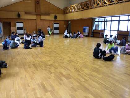 顔合わせの会をしています。班に分かれて自己紹介をしたり、協力して役割分担表を作ったりしています。
