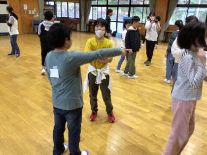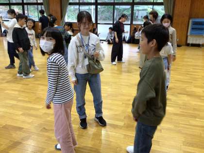 ちびっこギネスの後は、みんなでゲームをしました。全員の背中に動物の名前が貼り付けられています(自分に貼り付けられた動物の名前は分からない)ジャンケンをして負けた人が勝った人にヒントを与えます。ヒントを聞いて、じぶんの背中に貼り付けられた動物の名前を答えられた人が勝ちです。楽しそうです。