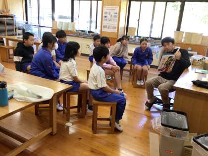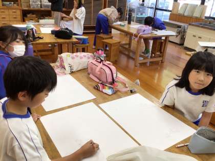 読書感想画のための読み聞かせを聞いています。お話によく集中しています。