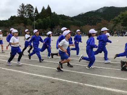 名前を呼ばれた時の大きな返事がとても印象的でした。みんな精一杯走りきりました。