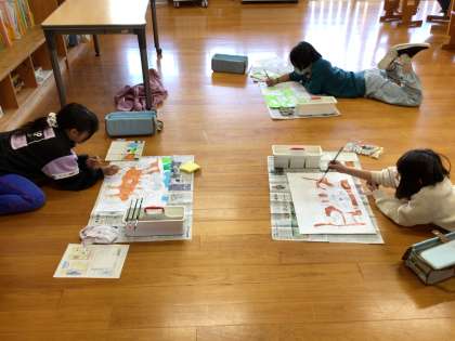 読書感想画です。すみずみまで丁寧に色ぬりをしています。