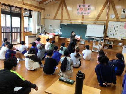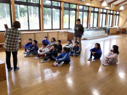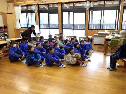 朝は読み聞かせがありました。低学年は英語の読み聞かせをしました。楽しそうにきいています。
