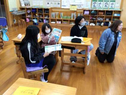 先週作ったオリジナルタウンの地図を使っての道案内の練習に、ALTの先生と一緒に取り組んでいます。