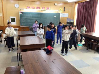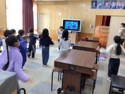 鍵盤ハーモニカのあとは動画に合わせてダンスをしています。1、2年生はダンスが大好きです。