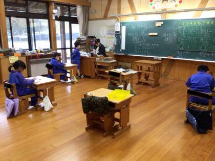 引き算の計算に各自で取り組んでいます。よく集中できています。