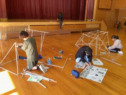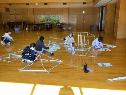 前回の続きです。家から新聞紙を丸めて持ってきている子もいました。楽しそうに集中して作っています。
