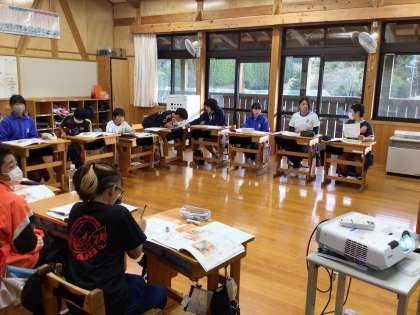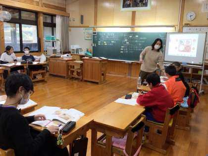 5年生は社会の時間に再生可能なエネルギーについて学習しています。6年生は家庭科の時間に調理について学習しています。