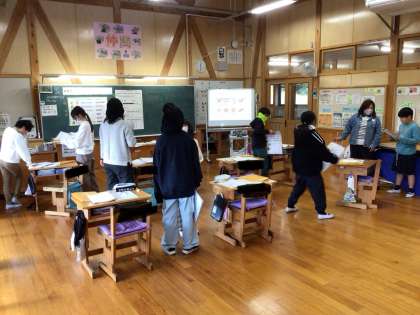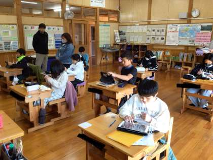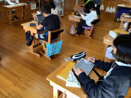 今日は5年生の外国語の授業でキュビナの研究授業を行いました。キュビナのリスニング問題に取り組みました。その後、食事の注文や値段について友達と英語でやり取りをしました。