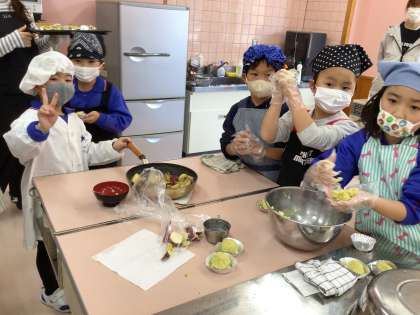 学校菜園でとれたさつまいもを使って、大学芋とスイートポテトを作りました。とてもおいしく出来上がりました。