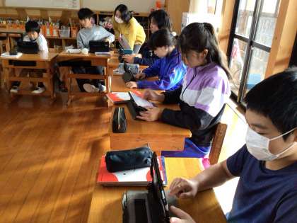 今日は6年生で研究授業を行いました。国語の「似た意味の言葉の使い分け」という単元に取り組みました。学習したことをキュビナを使って確認し、正答率が低かった問題についてあらためて解説をしました。
