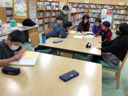 委員会活動がありました。図書委員は多読賞の賞状づくりと、メダル作りをしました。