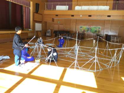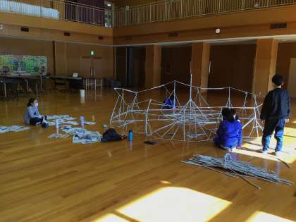 大きな新聞紙の家ができてきました。